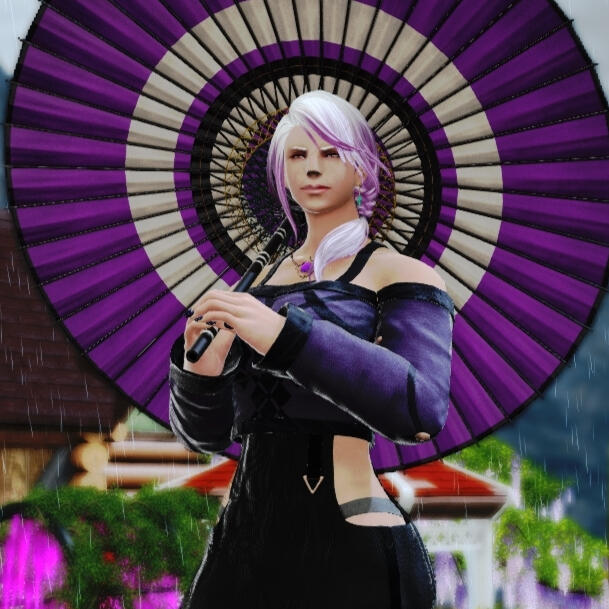 Hair Color: Snow white hair with lilac tips